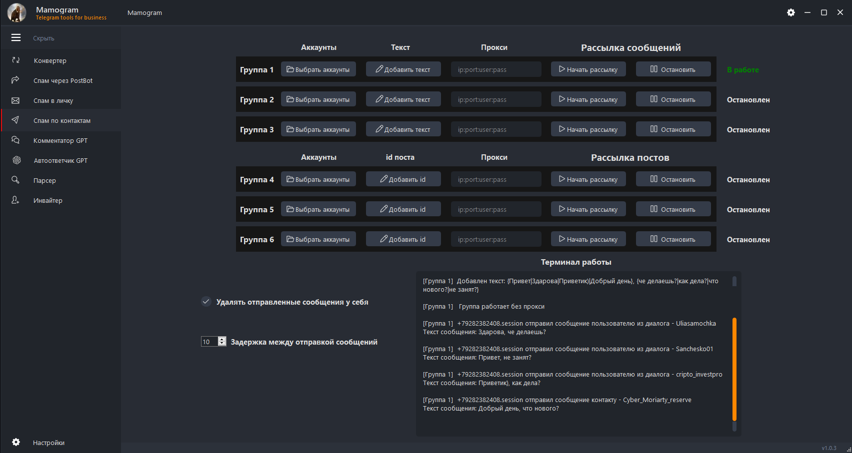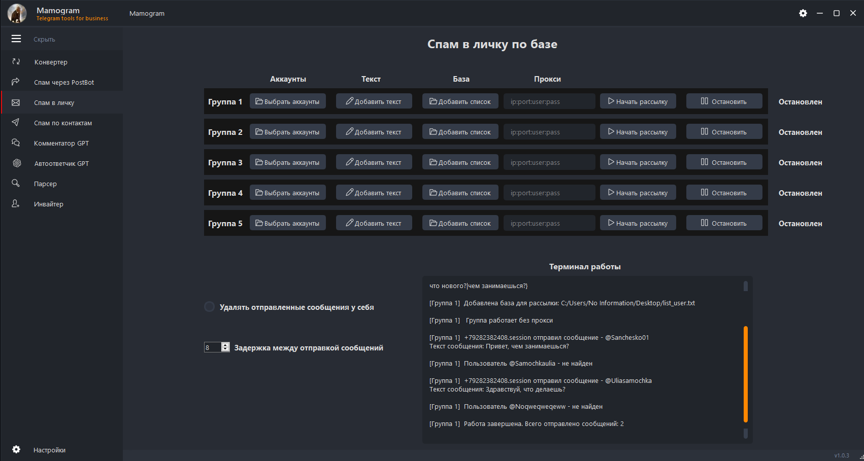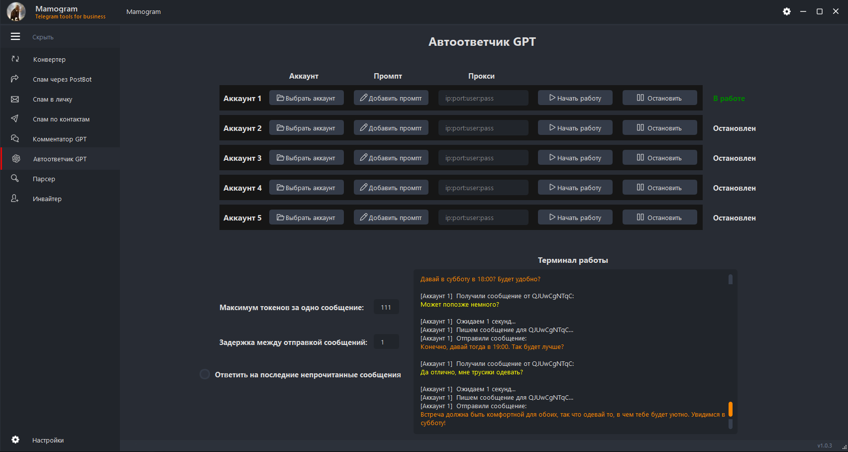 переписку с пользователями в ЛС по заданному промпту. Использует технологии ИИ