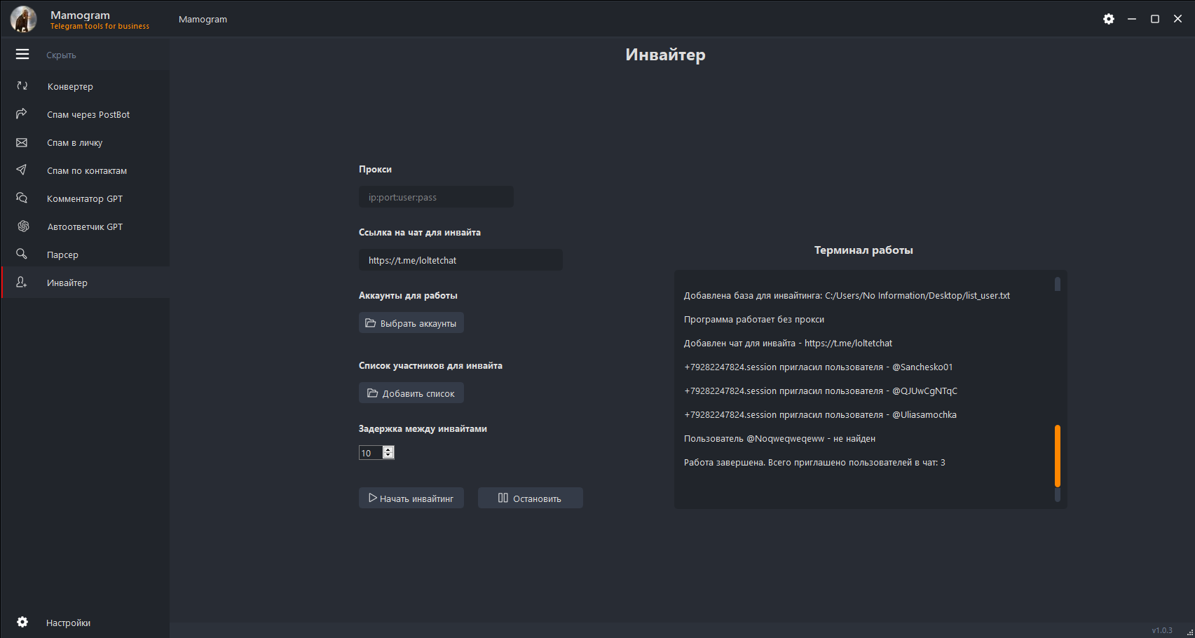 Можно инвайтить даже тех пользователей, у которых нет юзернейма.