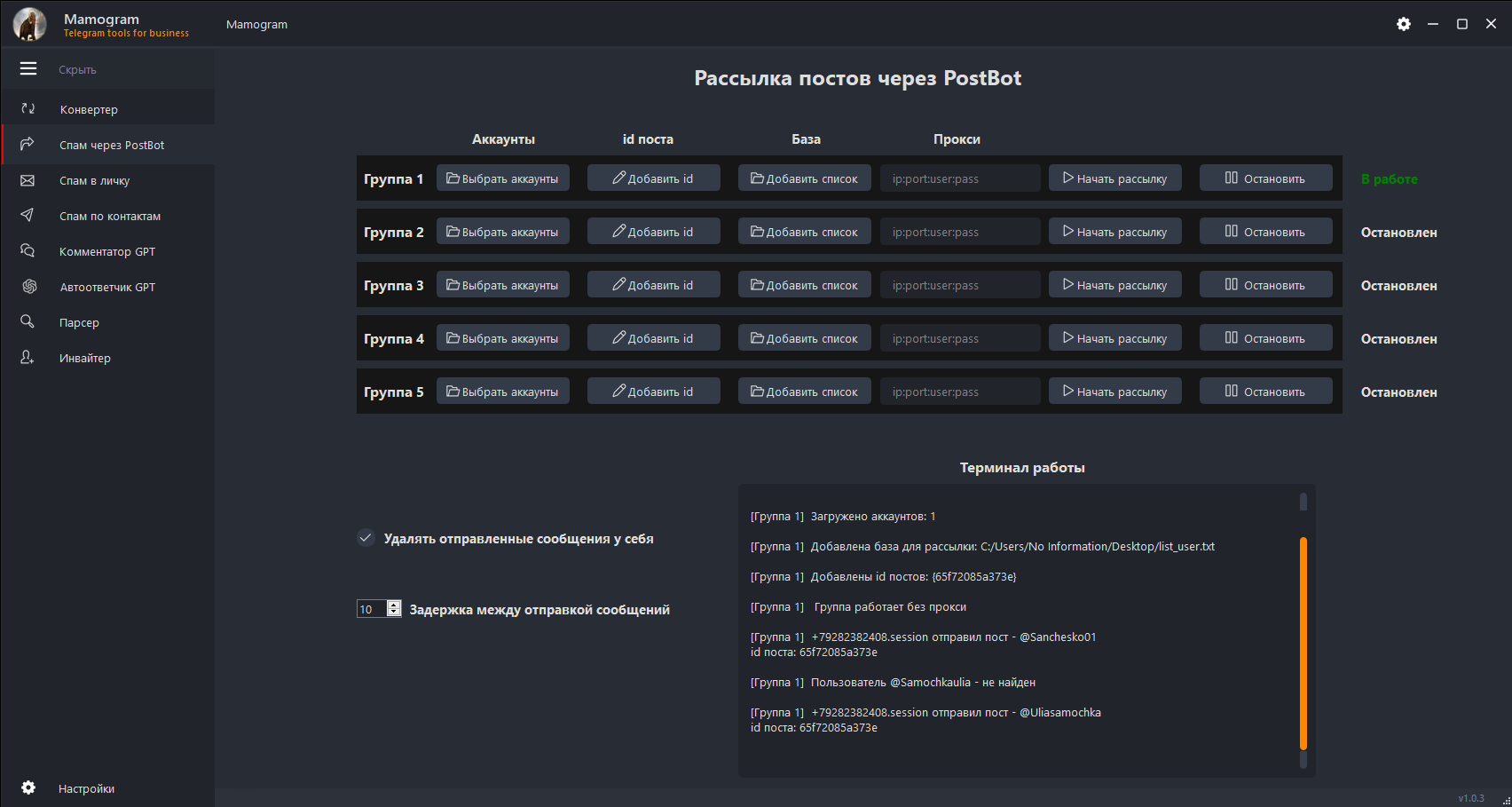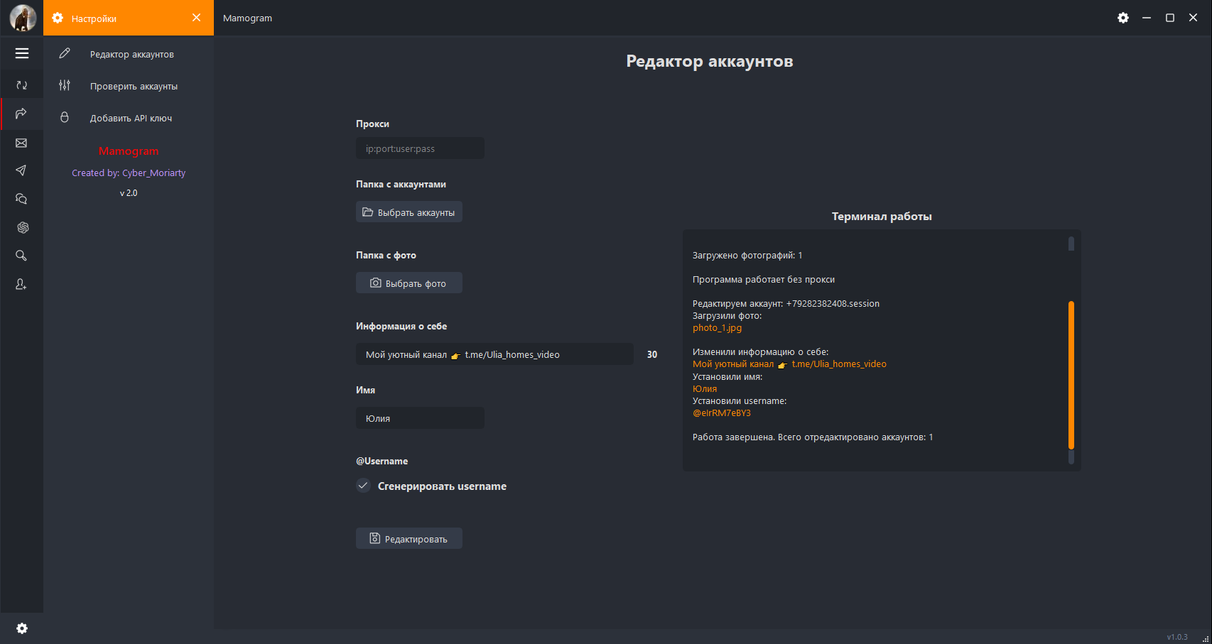 Также есть функция чекер аккаунтов, которая выполняет: проверку аккаунта на